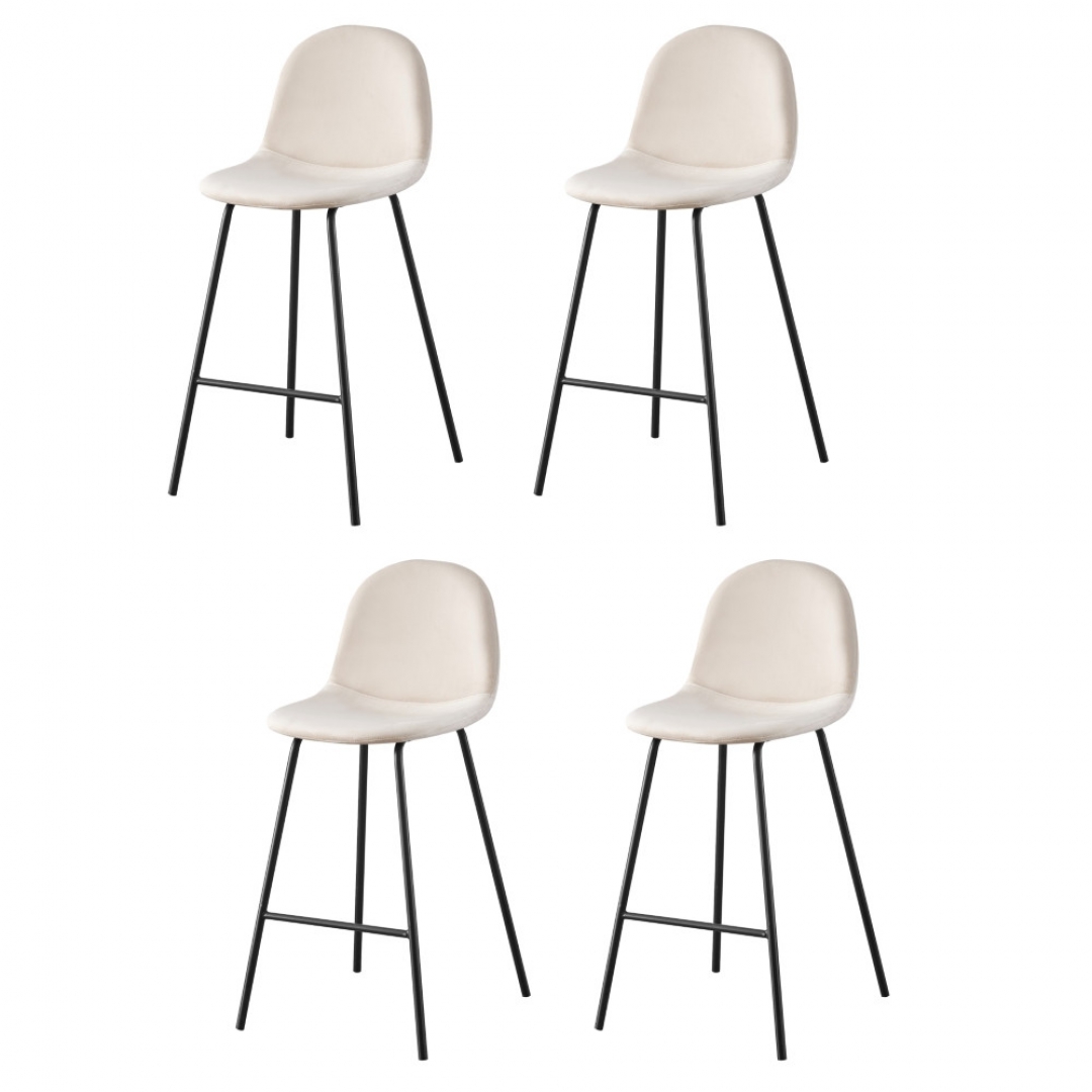 Preprost barski stol, na voljo v več barvah. Celoten stol je oblazinjen s kvalitetno tkanino, z občutkom žameta. Rahlo ukrivljena oblika sedeža in hrbtišča je prilagojena obliki telesa, in pomaga razbremeniti telo ob dolgotrajnem sedenju. Podnožje stola je izdelano iz kovinskih cevi in ima na sprednji strani naslon za noge. Za boljšo zaščito pred okoljem je podnožje tudi prašno lakirano. Maksimalna nosilnost stola je 120 kg.