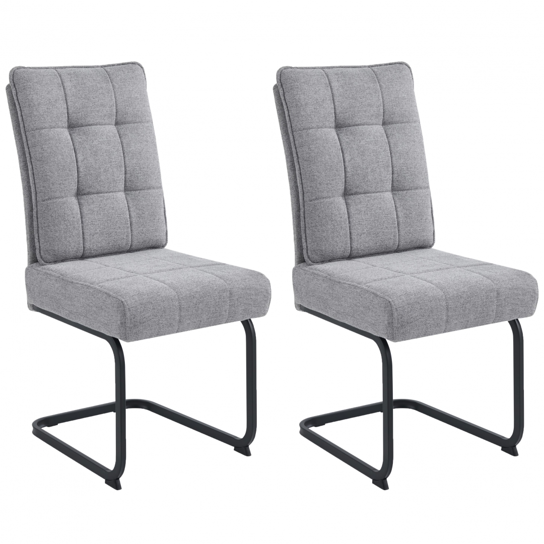 Stol je oblazinjen v svetlo sivo tkanino nevtralnega tona in je vsestransko uporaben v široki vrst različnih notranjih oblikovalskih shemah. Oblazinjenje vključuje okrasne šive kvadratne oblike po sedežu in naslonjalu.