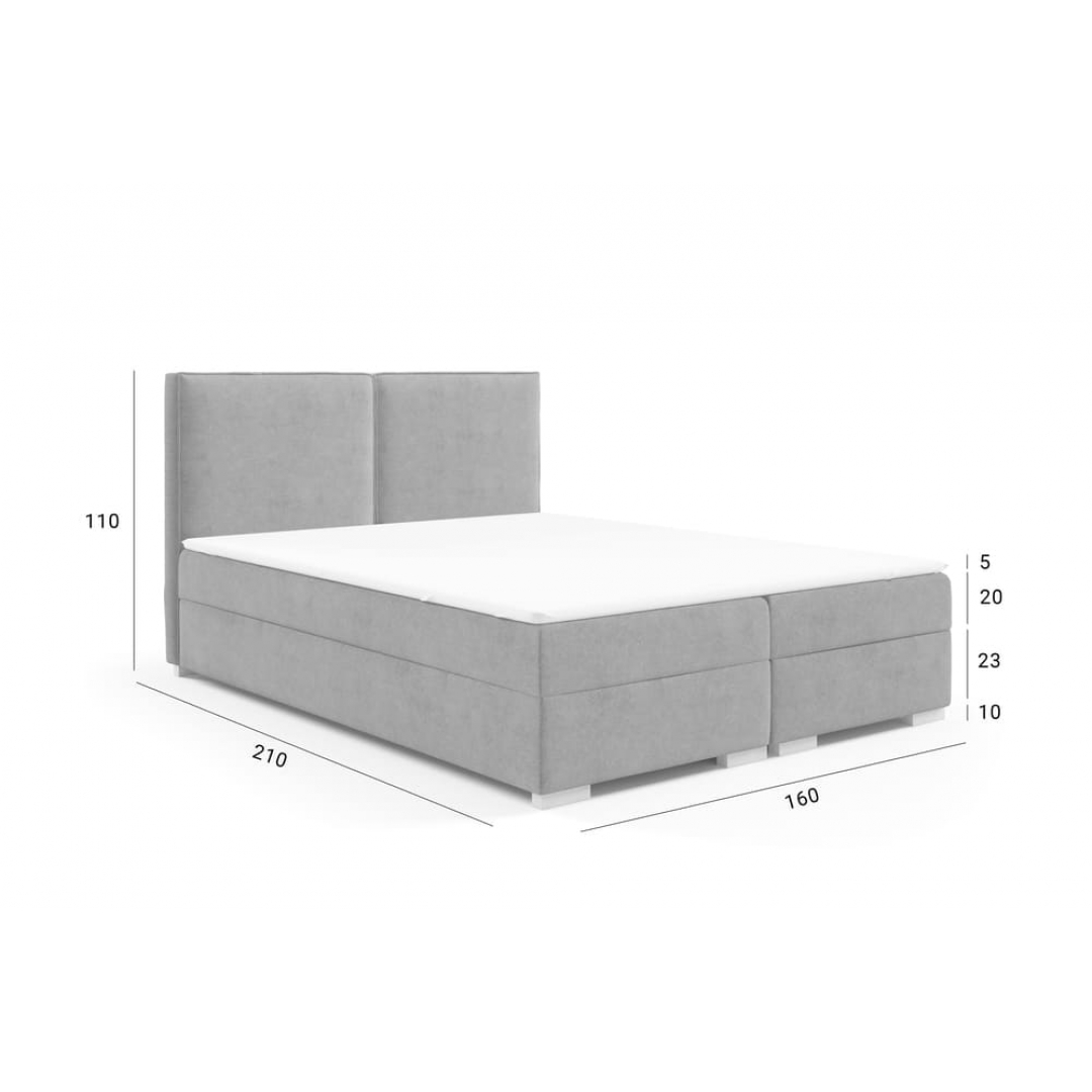 Postelja vključuje visoko oblazinjeno vzglavje, dve praktični skrinji za shranjevanje posteljnine ter dvema integriranima žepkastima vzmetnicama, srednje trdote, ki se odpirata bočno z vzmetno avtomatiko. Posteljo zaključuje dodaten nadvložek, ki je vključen v ceno in ima snemljivo ter pralno prevleko, kar pripomore pri ohranjanju čistega spalnega okolja.