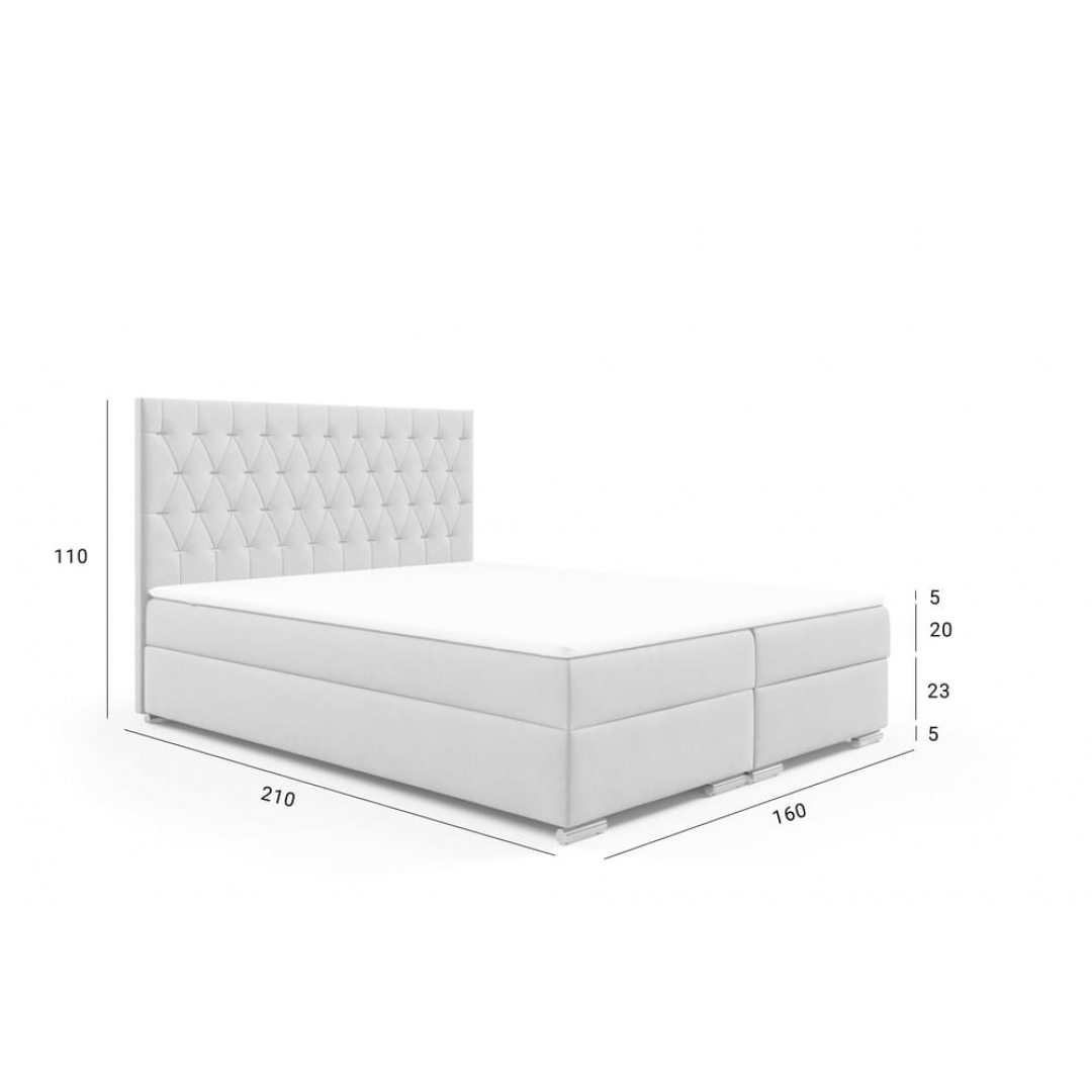 Postelja vključuje visoko oblazinjeno vzglavje, dve praktični skrinji za shranjevanje posteljnine ter dvema integriranima žepkastima vzmetnicama, srednje trdote, ki se odpirata bočno z vzmetno avtomatiko. Posteljo zaključuje dodaten nadvložek, ki je vključen v ceno in ima snemljivo ter pralno prevleko, kar pripomore pri ohranjanju čistega spalnega okolja.