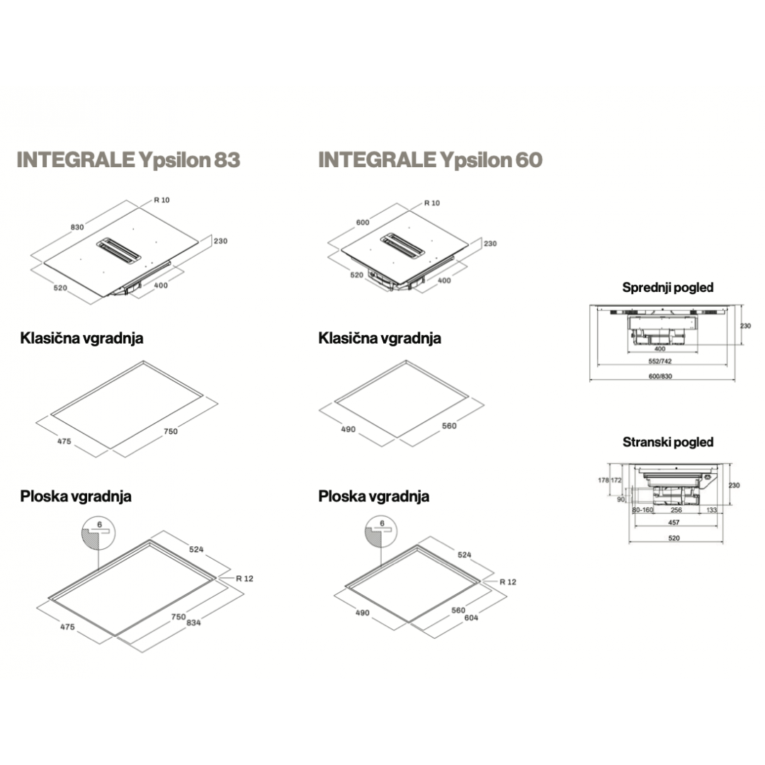 Širina kuhalne plošče je lahko 60cm ali 83cm.